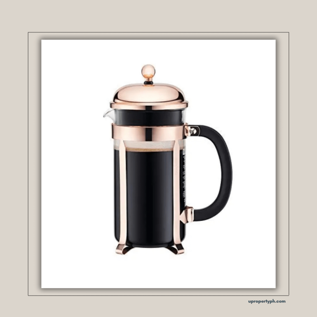 Bodum Chambord French Press: This is a classic and elegant French press that can brew up to 8 cups of coffee in minutes. It is made of stainless steel and glass, and it is easy to clean and use.