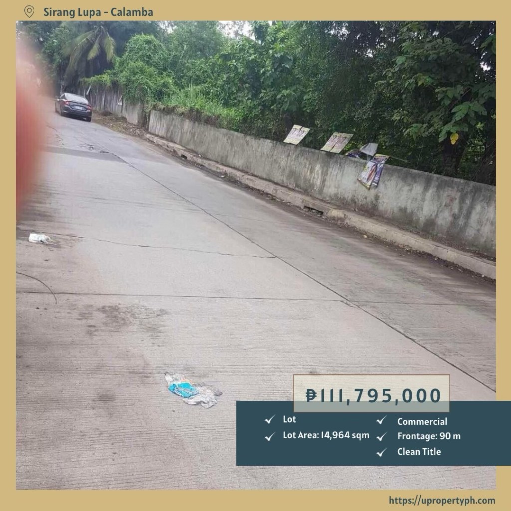 This 14,964 sqm commercial lot in Barangay Sirang Lupa, Calamba, Laguna is an exceptional investment opportunity that won’t last long. Whether you’re planning a commercial complex, logistics hub, or mixed-use development, this property offers the location, scale, and potential to bring your vision to life.