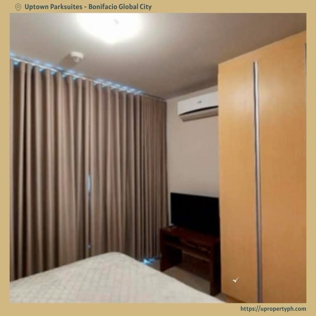 Own this high-floor, fully furnished 1-bedroom condo at Uptown Parksuites Tower 1 in BGC.